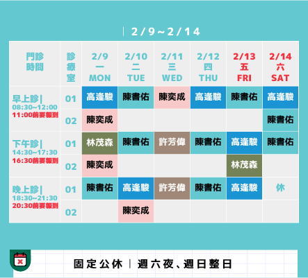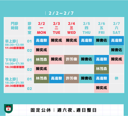 - 晚上診 17:30~人太多隨時停止現場掛號︱17:30抽號碼牌依序辦理,18:30開始開診依序看診
