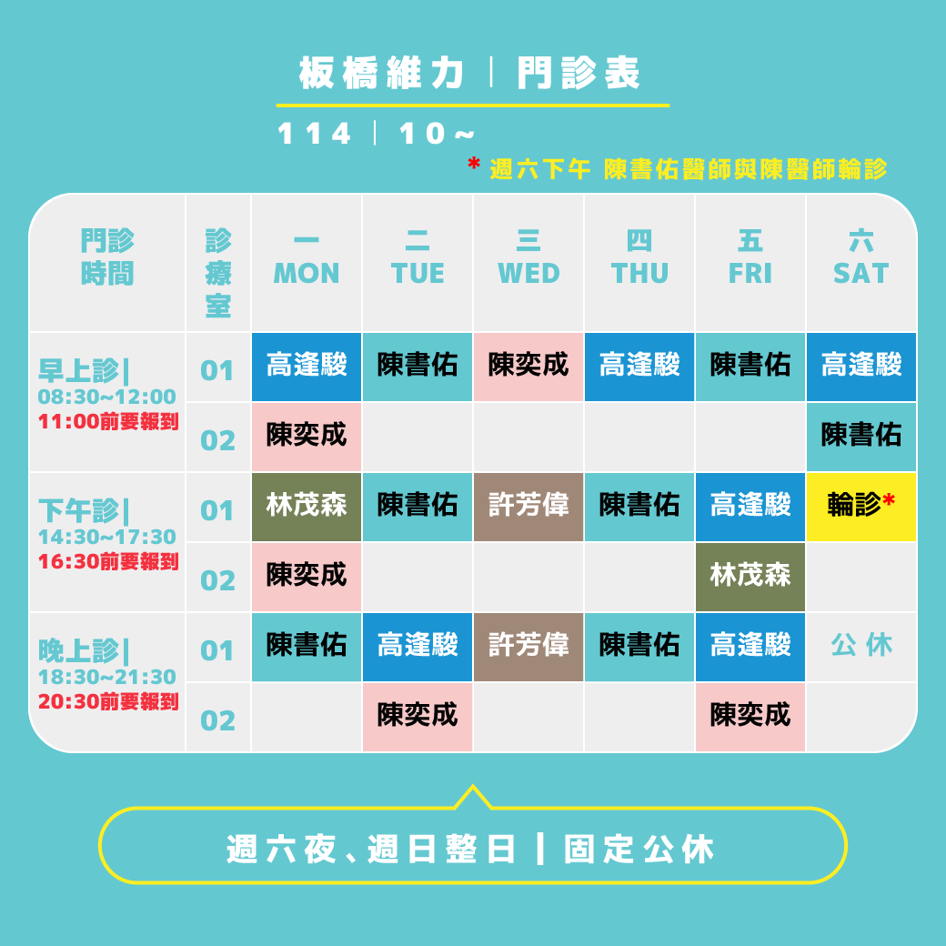 - 晚上診 17:30~20:30前 開放現場掛號;18:30開始看診