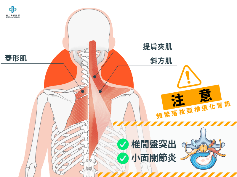 | 反覆發生 | 可能是頸椎退化的警訊,須查明落枕的真正病因,對症下藥。 |