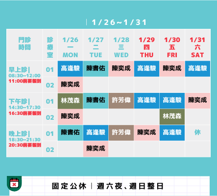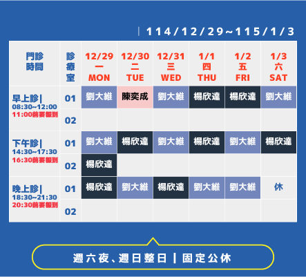 - 晚上診 17:30~人太多隨時停止現場掛號︱17:30抽號碼牌依序辦理,18:30開始開診依序看診